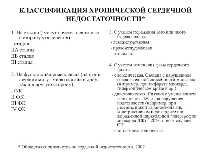 2. Классификация сердечной недостаточности