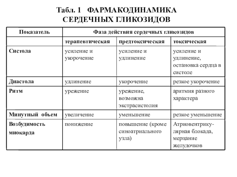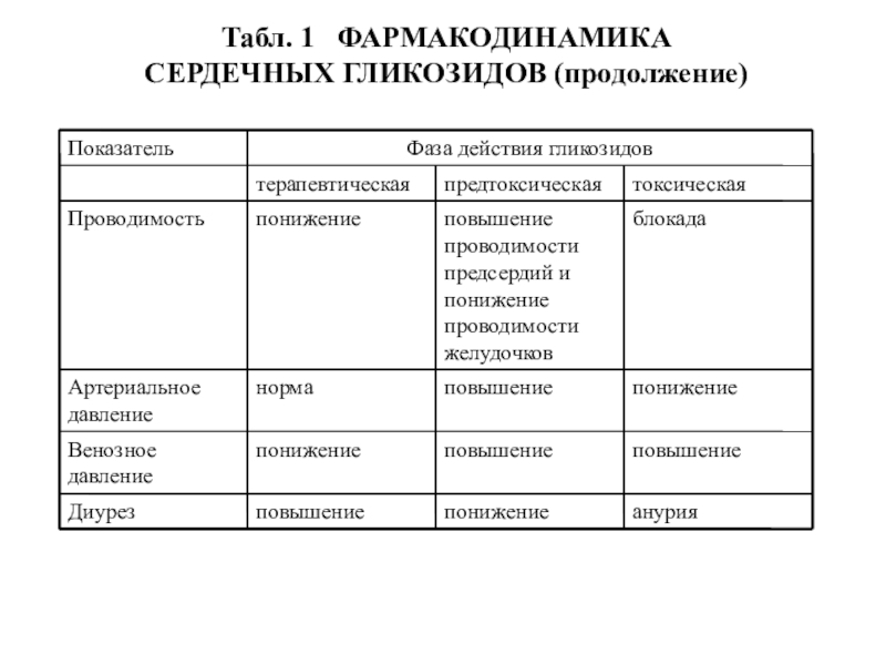 Слайд 15Табл. 1 ФАРМАКОДИНАМИКА