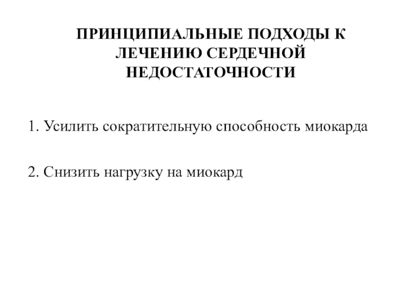 Слайд 7ПРИНЦИПИАЛЬНЫЕ ПОДХОДЫ К ЛЕЧЕНИЮ СЕРДЕЧНОЙ НЕДОСТАТОЧНОСТИ