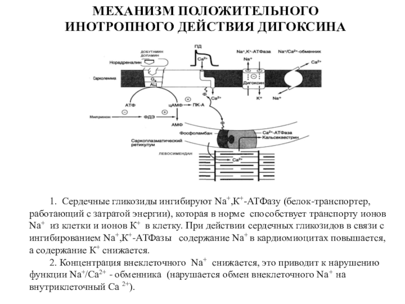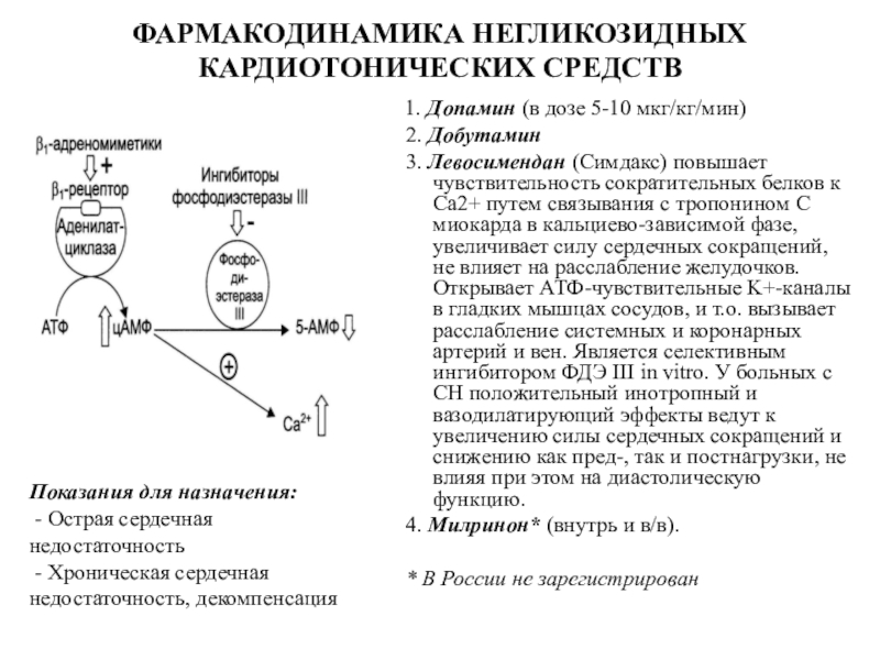 Слайд 22ФАРМАКОДИНАМИКА НЕГЛИКОЗИДНЫХ КАРДИОТОНИЧЕСКИХ СРЕДСТВ