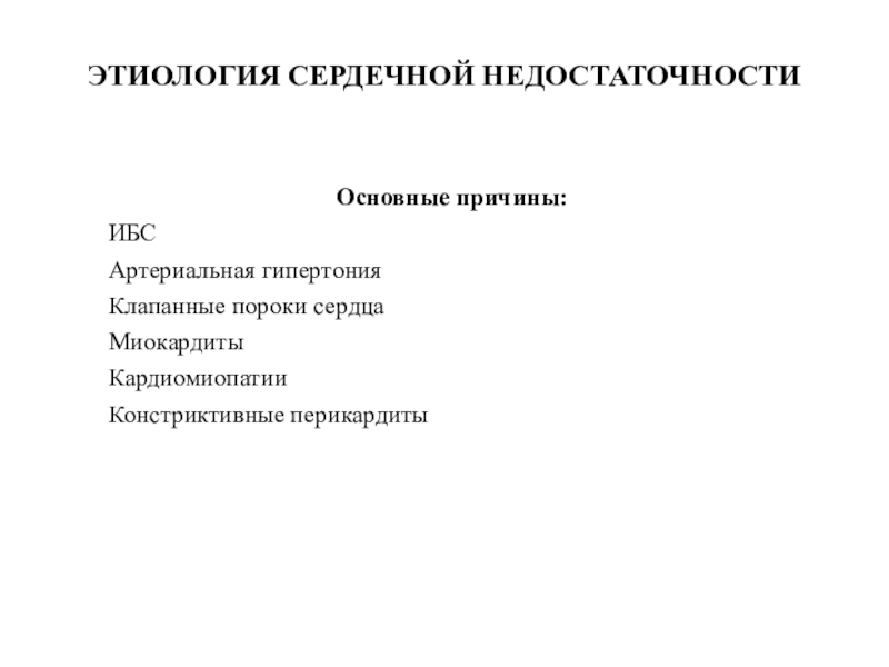 Слайд 6ЭТИОЛОГИЯ СЕРДЕЧНОЙ НЕДОСТАТОЧНОСТИ