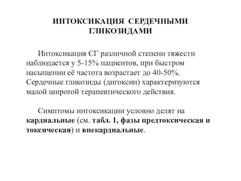 Слайд 18ИНТОКСИКАЦИЯ СЕРДЕЧНЫМИ ГЛИКОЗИДАМИ