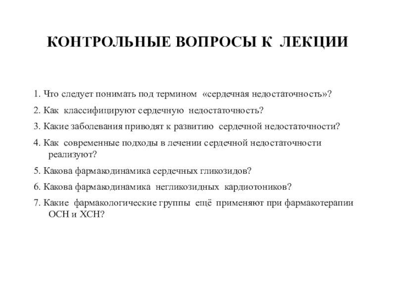 7. Фармакотерапия при ОСН и ХСН