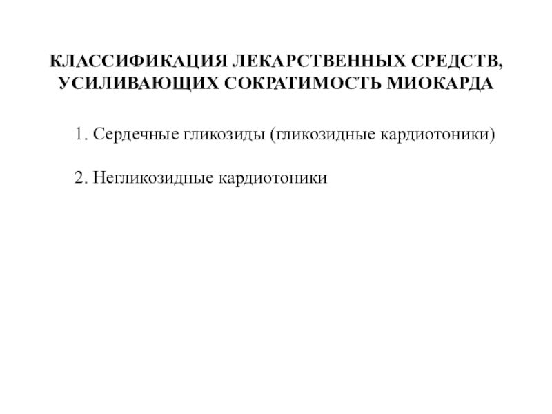 Слайд 8КЛАССИФИКАЦИЯ ЛЕКАРСТВЕННЫХ СРЕДСТВ, УСИЛИВАЮЩИХ СОКРАТИМОСТЬ МИОКАРДА