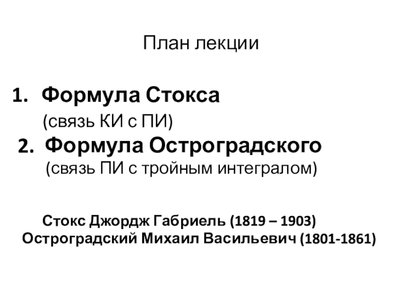 Стокс Джордж Габриель (1819 – 1903)Остроградский Михаил Васильевич (1801-1861)