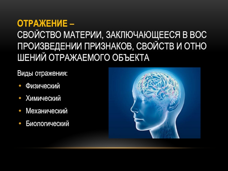 Слайд 32ОТРАЖЕНИЕ –свойство материи, заключающееся в воспроизведении признаков, свойств и отношений отражаемого объекта