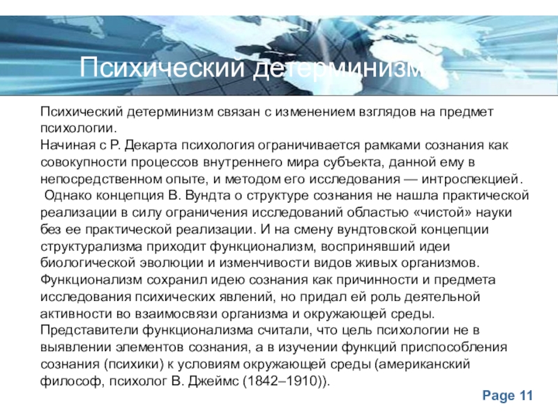 Слайд 11Психический детерминизм связан с изменением взглядов на предмет психологии.