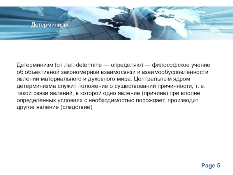 Слайд 5Детерминизм (от лат. determine — определяю) — философское учение об