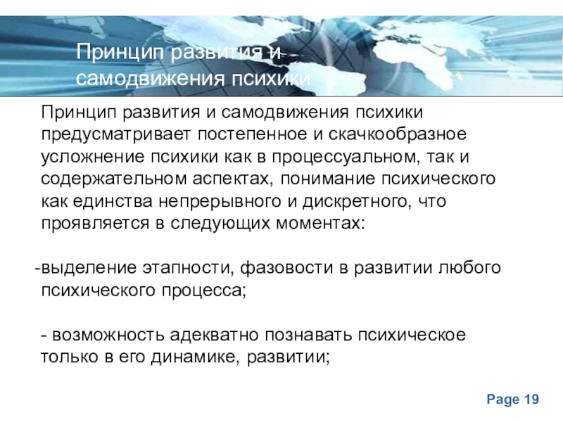Слайд 19Принцип развития и самодвижения психики предусматривает постепенное и скачкообразное усложнение