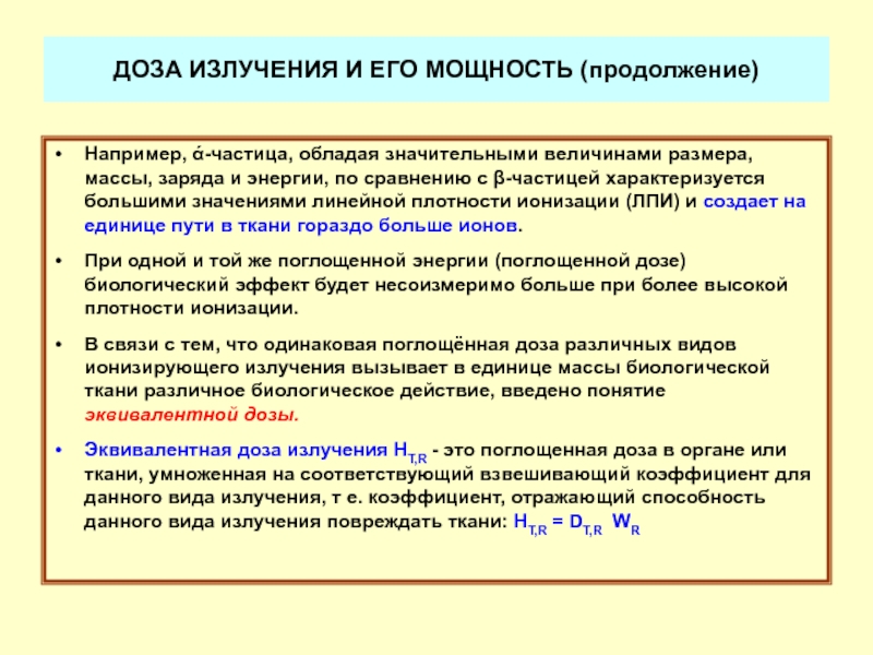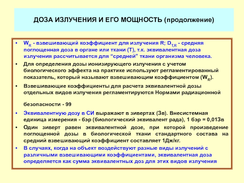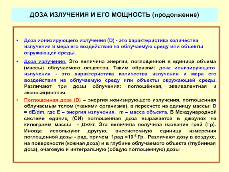 Слайд 10ДОЗА ИЗЛУЧЕНИЯ И ЕГО МОЩНОСТЬ (продолжение)