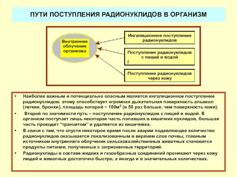 Слайд 19ПУТИ ПОСТУПЛЕНИЯ РАДИОНУКЛИДОВ В ОРГАНИЗМ