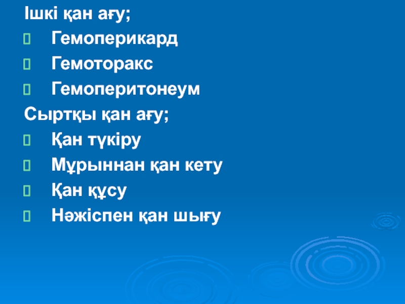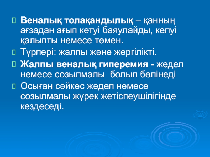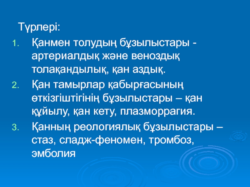 плазморрагия.Қанның реологиялық бұзылыстары – стаз, сладж-феномен, тромбоз, эмболия