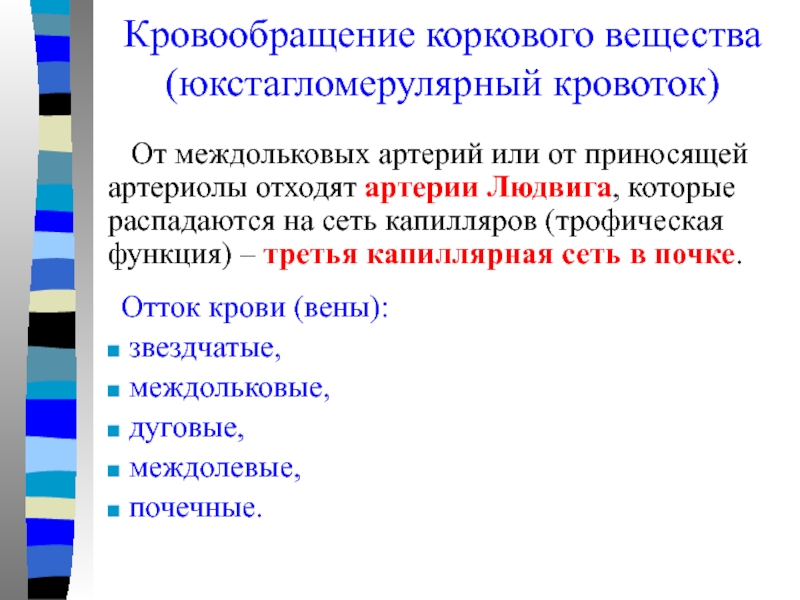 Слайд 15Кровообращение коркового вещества (трансгломерулярный кровоток)