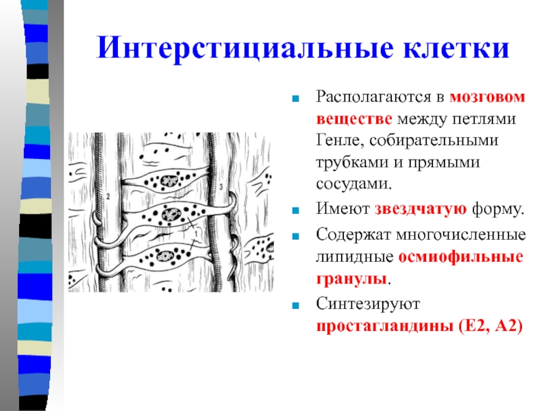 Располагаются в мозговом веществе между петлями Генле, собирательными трубками