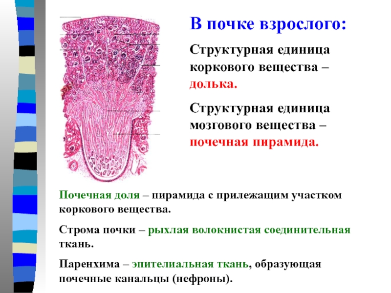 Паренхима – эпителиальная ткань, образующая почечные канальцы (нефроны).