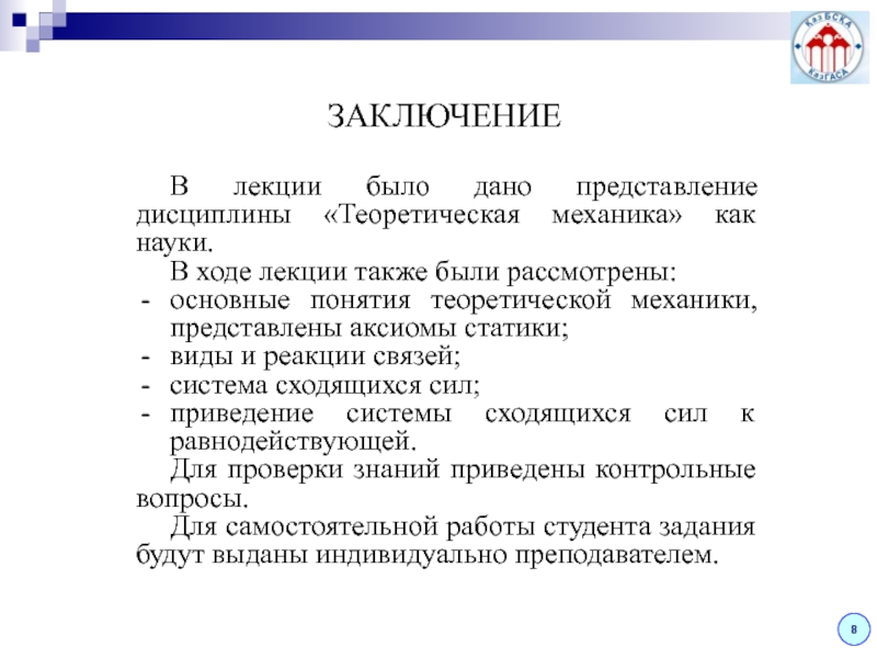 Осталась всего одна сила, эквивалентная исходной системе сил.