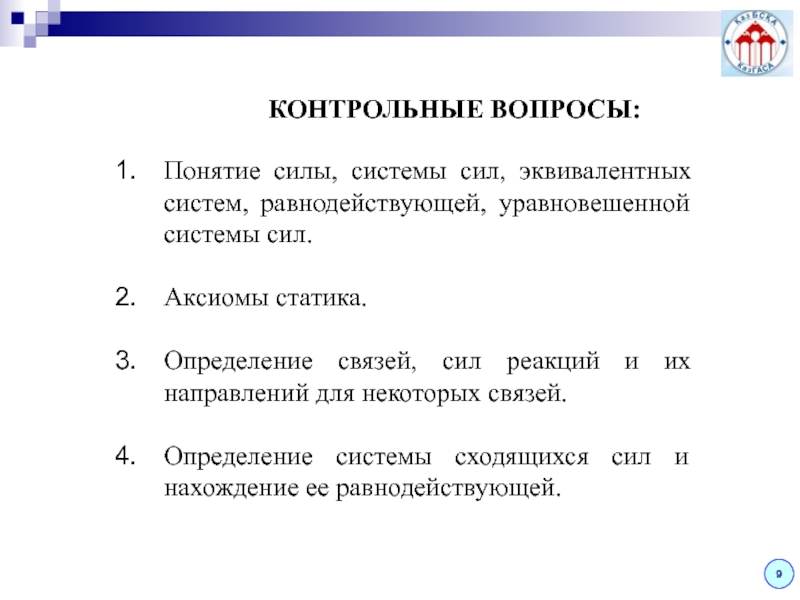 План исследования любой системы сил соответствует последовательному решению