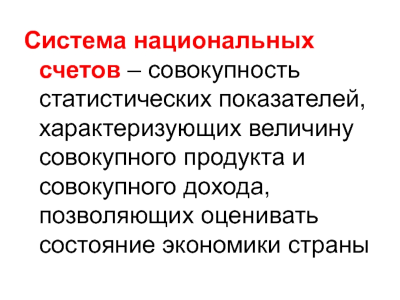 Слайд 3Система национальных счетов – совокупность статистических показателей, характеризующих величину совокупного