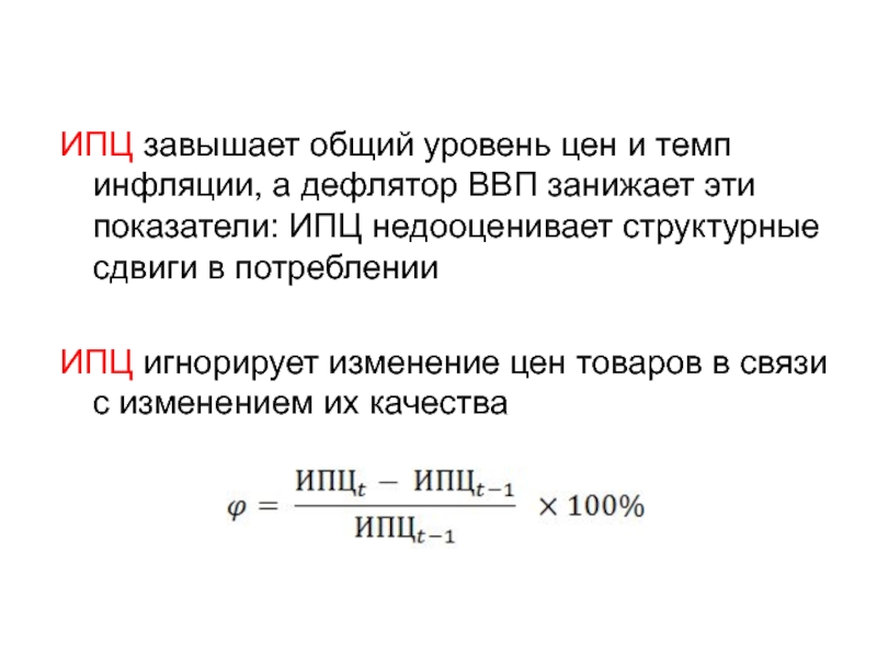 ИПЦ завышает общий уровень цен и темп инфляции, а дефлятор