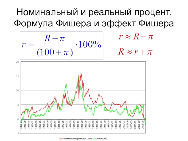 Слайд 49Номинальный и реальный процент. Формула Фишера и эффект Фишера