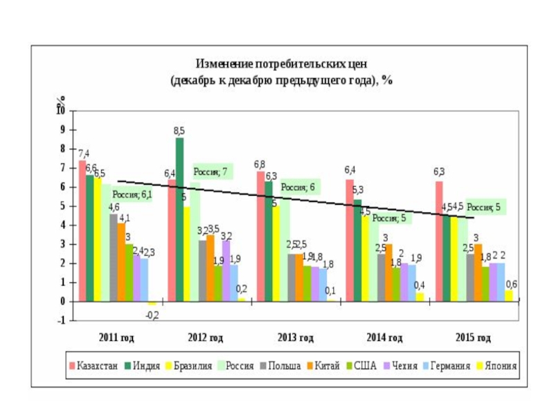 Слайд 46Изменение потребительских цен в отдельных странах мира, % в год