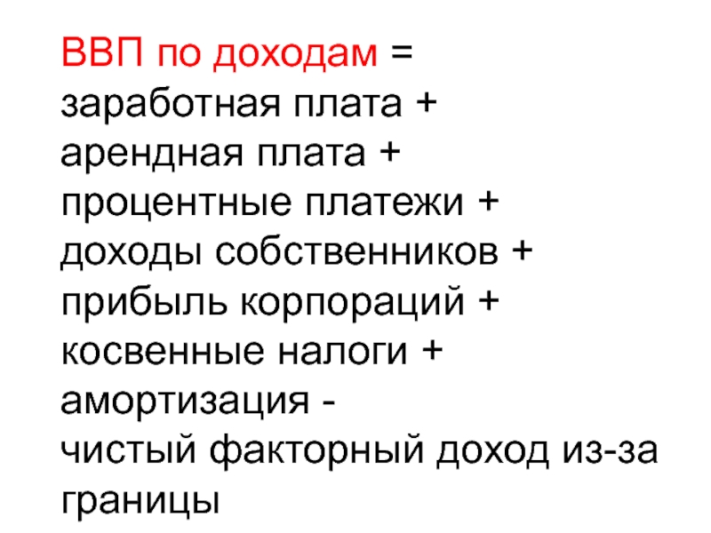 ВВП по доходам = W + R + r + P + T + A