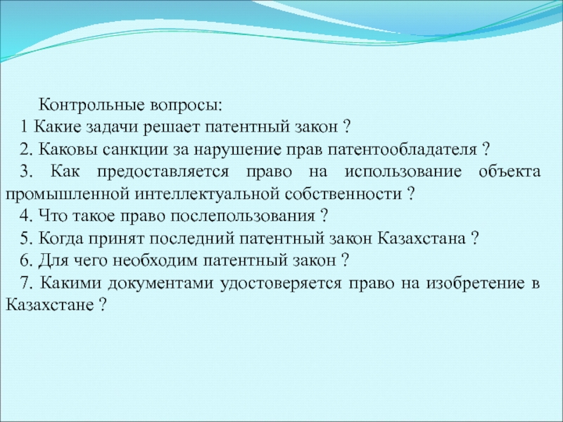7. Какими документами удостоверяется право на изобретение в Казахстане ?