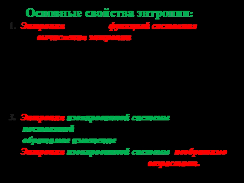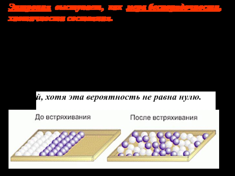 Энтропия выступает, как мера беспорядочности, хаотичности состояния.