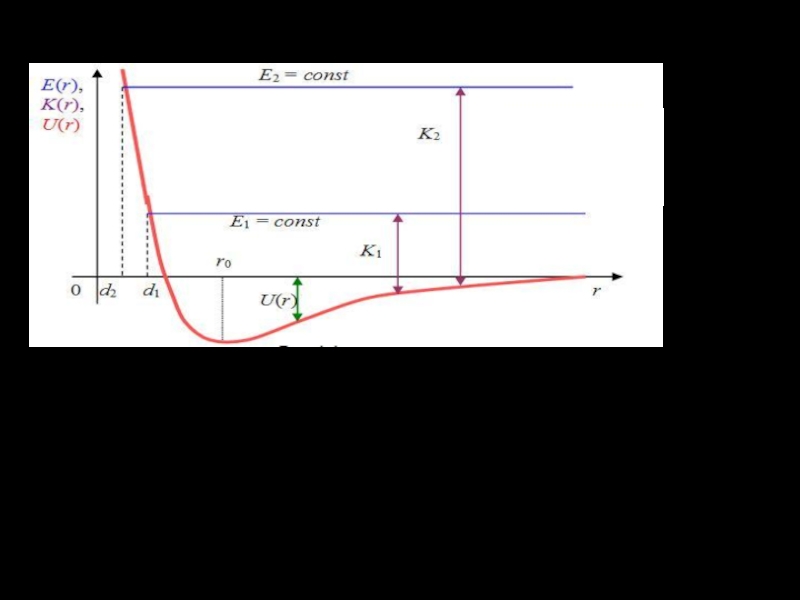При r = d1 E1 = K и Т = 0 (скорость = 0). Величина d1 в данном случае минимальное расстояние между молекулами.