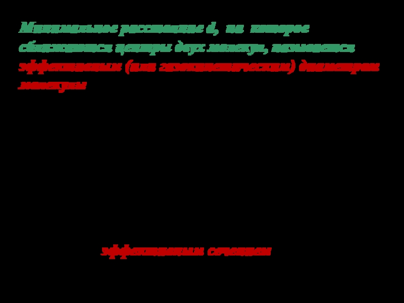 Слайд 33Минимальное расстояние d, на которое сближаются центры двух молекул, называется