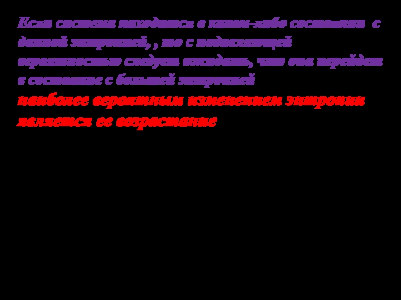 Слайд 17Если система находится в каком-либо состоянии с данной энтропией, ,
