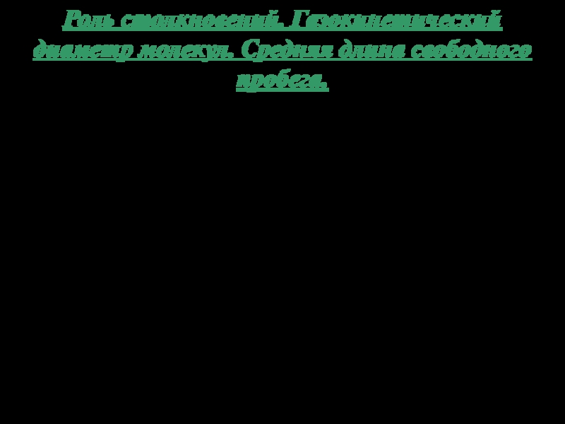 Слайд 27Роль столкновений. Газокинетический диаметр молекул. Средняя длина свободного пробега.