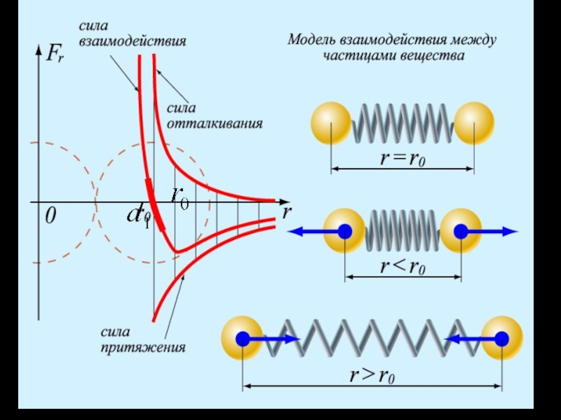 недеформированном состоянии длину r0. При r = r0 силы притяжения и отталкивания уравновешены.