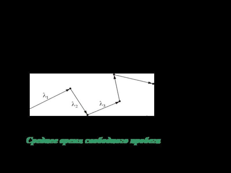 Слайд 28Свободно молекула пролетает короткое расстояние до следующего столкновения. В момент