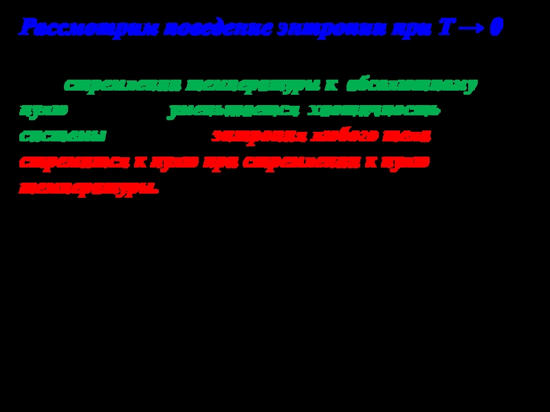 Слайд 21Рассмотрим поведение энтропии при Т → 0