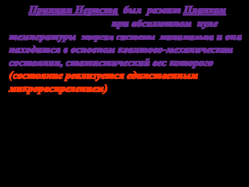 Слайд 22 Принцип Нернста был развит Планком, предположившим,