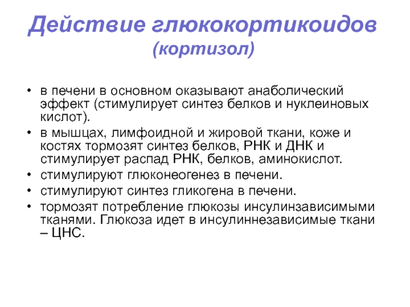 коже и костях тормозят синтез белков, РНК и ДНК и стимулирует распад РНК, белков, аминокислот.