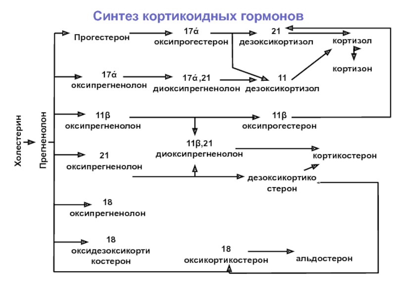 Слайд 79Синтез андрогенов и их предшественников в коре надпочечников