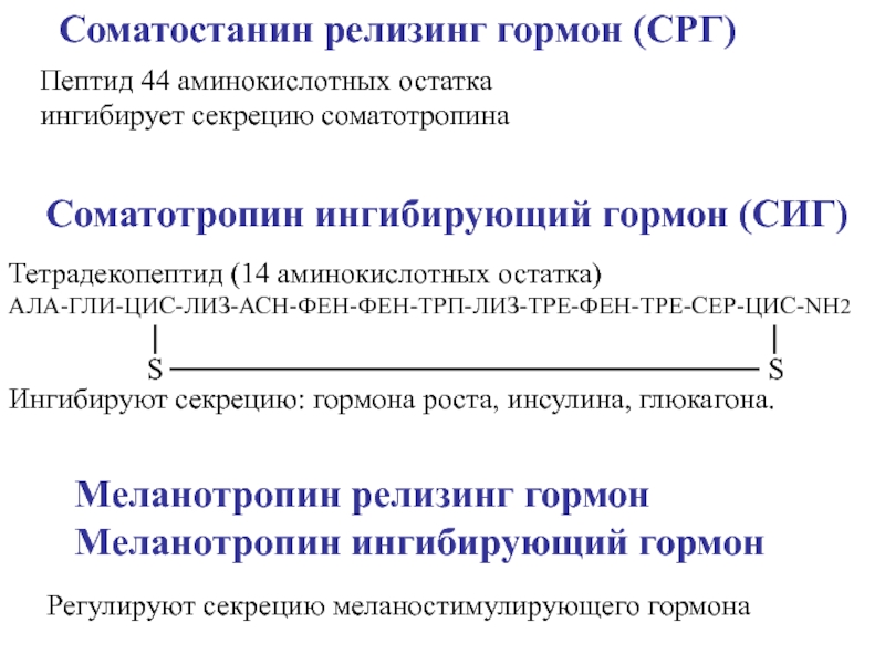 СТГ – соматотропный гормон (гормон роста), одноцепочечный полипептид из