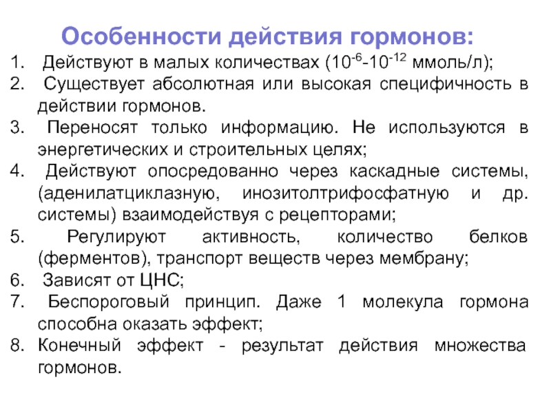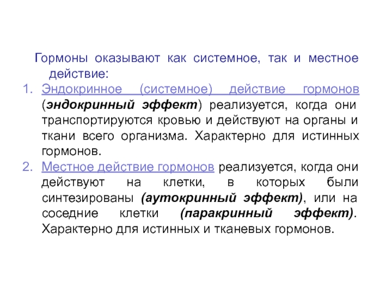 Слайд 11Гормоны – органические сигнальные молекулы беспроводного системного действия.