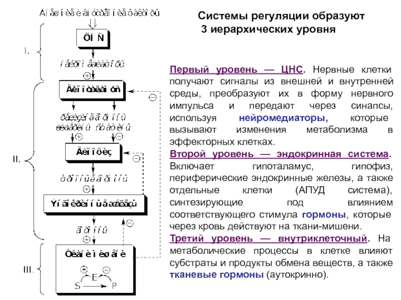 Слайд 8Первый уровень — ЦНС. Нервные клетки получают сигналы из внешней