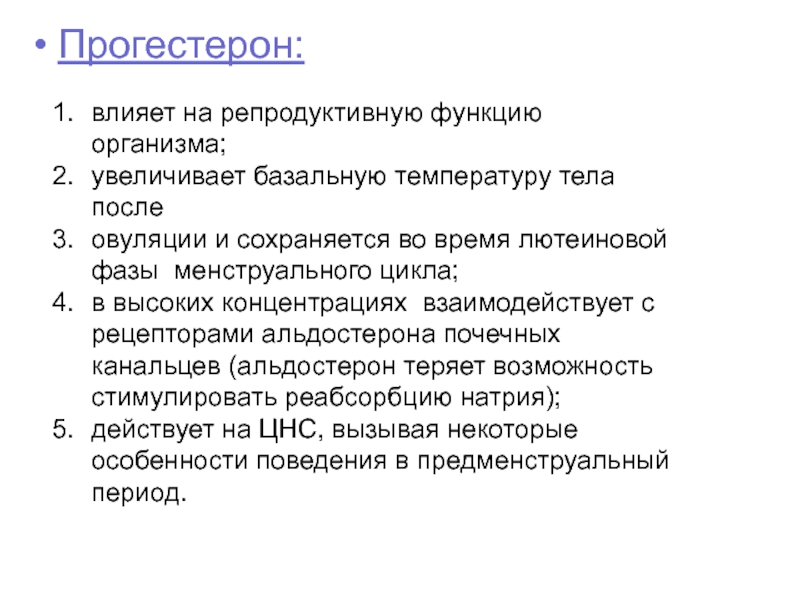 действует на ЦНС, вызывая некоторые особенности поведения в предменструальный период.