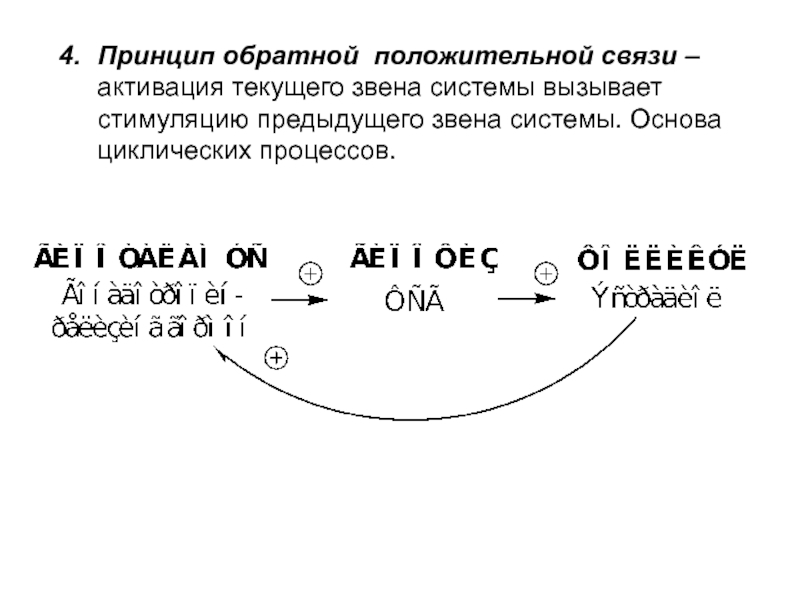 Слайд 10Принцип обратной положительной связи – активация текущего звена системы вызывает