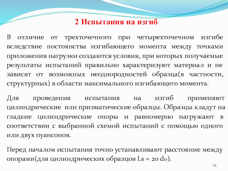 при которых получаемые результаты испытаний правильно характеризуют материал и не зависят от возможных неоднородностей образца(в частности, структурных) в области максимального изгибающего момента.