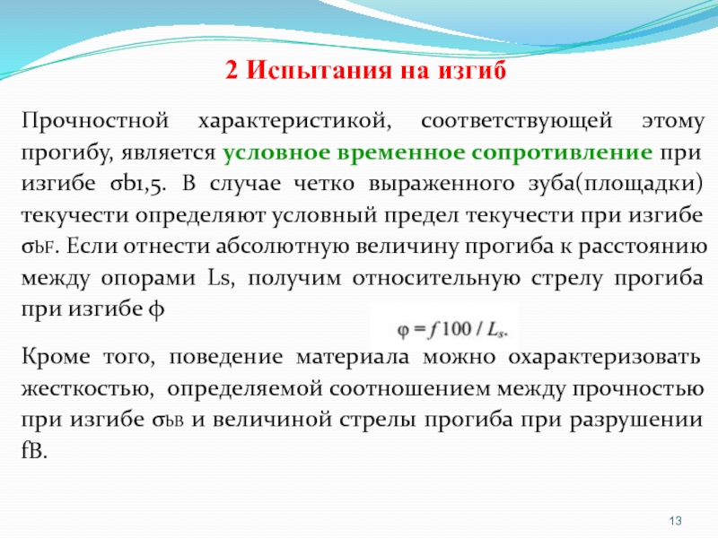 текучести определяют условный предел текучести при изгибе σbF. Если отнести абсолютную величину прогиба к расстоянию между опорами Ls, получим относительную стрелу прогиба при изгибе φ