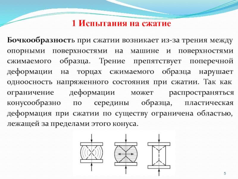 опорными поверхностями на машине и поверхностями сжимаемого образца. Трение препятствует
