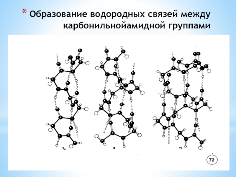 Слайд 54Образование водородных связей между карбонильнойамидной группами