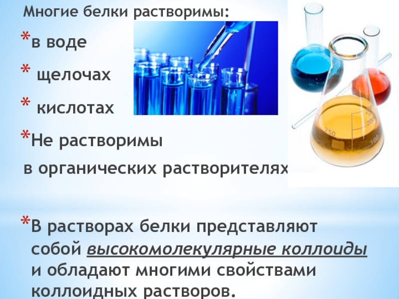 растворах белки представляют собой высокомолекулярные коллоиды и обладают многими свойствами