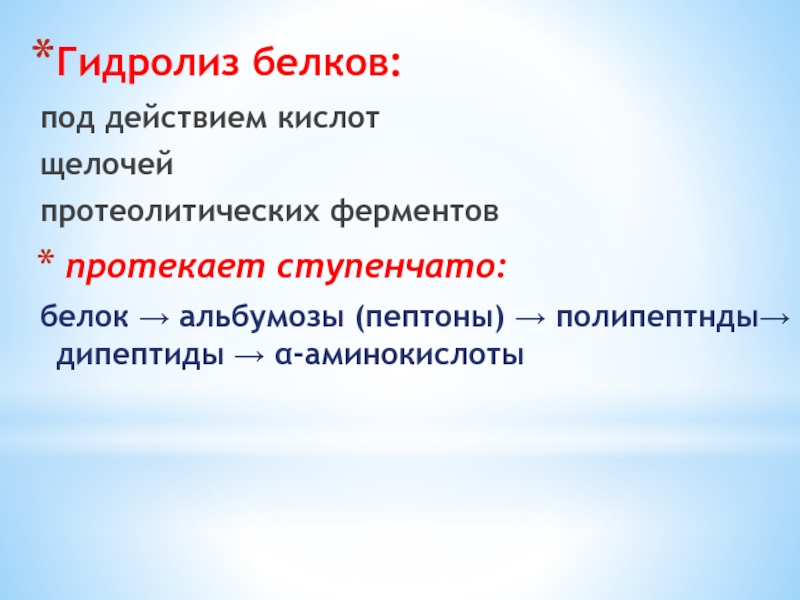 альбумозы (пептоны) полипептнды дипептиды -аминокислоты
