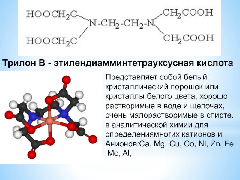 Слайд 12Трилон В - этилендиамминтетрауксусная кислота